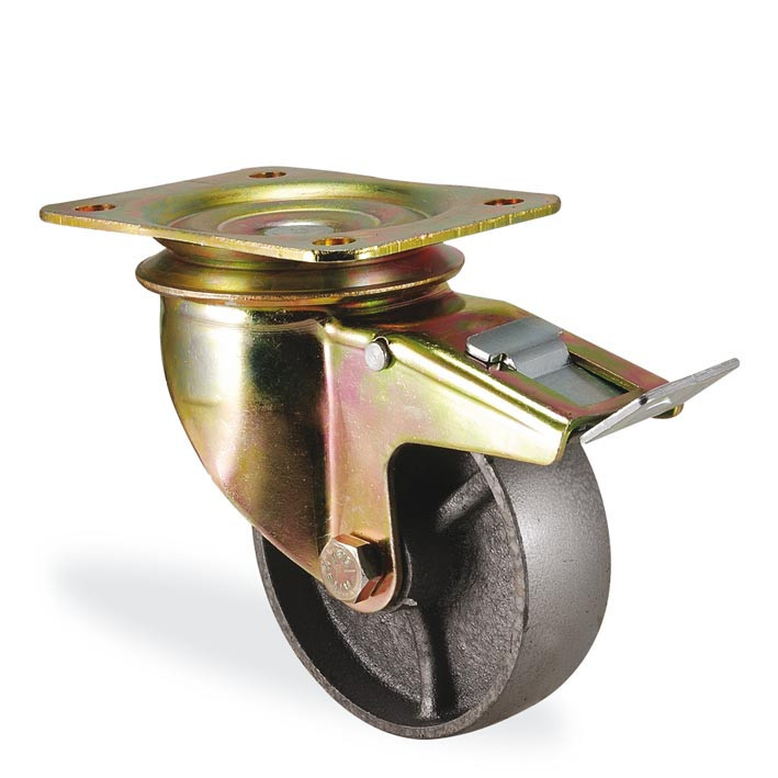 Komple döküm gövde yapısı, 200 Kg'a kadar olan yüklerde yüksek direnç sağlar. Plastik tekerleklerin aksine statik baskı altında formunu korur. |